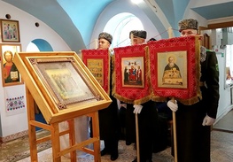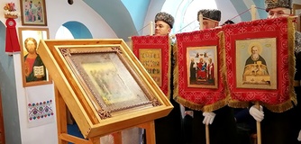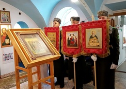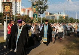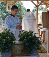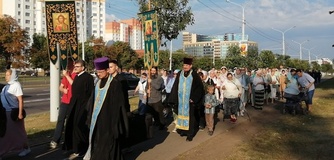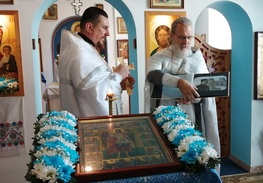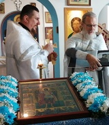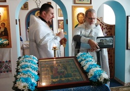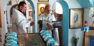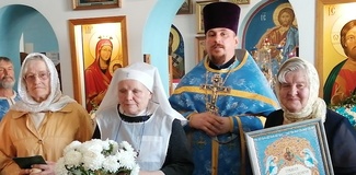 Не только наши паломники посещали различные святые места, но и святыня посетила нас . 30 августа в воскресение, , после Божественной литургии, на кануне празднования дня преподобного Серафима Саровского. Наш приход во главе с настоятелем о.Иоанном и о.Владимиром торжественно с хоругвями встречал чудотворную Табынскую икону Божией Матери возле строящегося храма в честь Архангела Михаила. Крёстным ходом от строящегося храма к действующему, была принесена икона в наш храм, где сразу же отслужили молебен с акафистом в её честь. А сопровождавшими святыню казаками была рассказана история происхождения чудотворной иконы Божией Матери Табынская. Так, наш приход не выезжая за пределы а.г.Новый двор, совершил паломничество к святыне, как и жители агрогородка смогли посетить святыню в удобное для себя время. Каждый спешил со своими просьбами и вопросами и помолиться. Икона Матери Божией Табынская торжественно отбыла из нашего храма через день, 2 августа, в день празднования Илии Пророка. А тепло и память об этом событии прихожане хранят в своем сердце и по ныне.