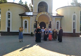 Далее, нам рассказали про Храм (подробности сохраню в тайне для будущих паломников). С торца здания памятник, погибшим воинам 1 первой мировой. Далее, нам показали место проживания монахов и голубей. Ещё, нас подвели к памятнику Преподобного Елисея и рассказали историю его возникновения. С торца здания зрама памятник, погибшим воинам 1 первой мировой. Затем уже, мы паломничали от одной часовенки до другой, с подробным рассказом о них. Посетили могилки 2-х монахов. Осмотрели окрестности с высоты колокольного звона. Ещё, нам крупно повезло, мы окунулись в купели, а кто-то и не один раз.... Весьма чистенькие и радостные, совершили крестный ход с акафистом преподобному Елисею вокруг монастыря. А потрудившись, перекусили вкусным монастырским обедом и поехали далее по местным святыням, в Храм Успения Пресвятой Богородицы.